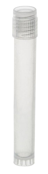 Single Storage Vial made from high quality polypropylene plastic. Vial has a 5mL capacity, measures 3.5" total length and is 0.5" in diameter. The included screw cap has a built in leak-proof ring seal. Can be used for storage of biological material, human and animal cells, or any other small substances.