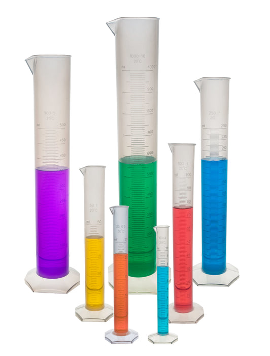 7pc Measuring Cylinder Set - 10ml, 25ml, 50ml, 100ml, 250ml, 500ml & 1000ml - Class B - US Sourced Polypropylene
