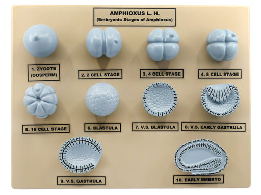 View full detailsAmphioxus Embryonic Stages Model - Three Dimensional with Hand Painted Details - Mounted on Base, 10" x 9" - Eisco Labs