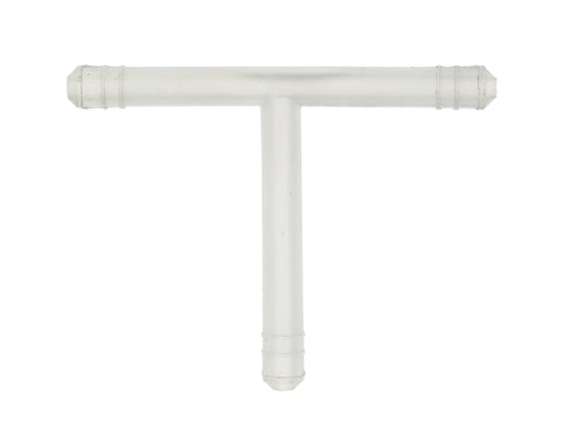Pollypropylene, three way, riffled end for rubber tubing. T shape, 8 mm, Pollypropylene, three way, riffled end for rubber tubing.
