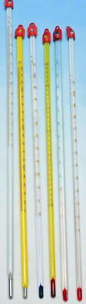 Mercury in glass with yellow enamelled back and reinforced bulbs. Length 305 mm Range : -10 to 110 °C Grad. 0.5 °CLength 305 mm