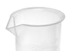Pack of 12, 50ml beakers made of premium quality, translucent polypropylene plastic. 5ml raised graduations and specifications. Each beaker features a tapered spout for easy pouring.