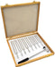 - Set comes in a wooden case, with foam liner fitted to secure forks and mallet in place.