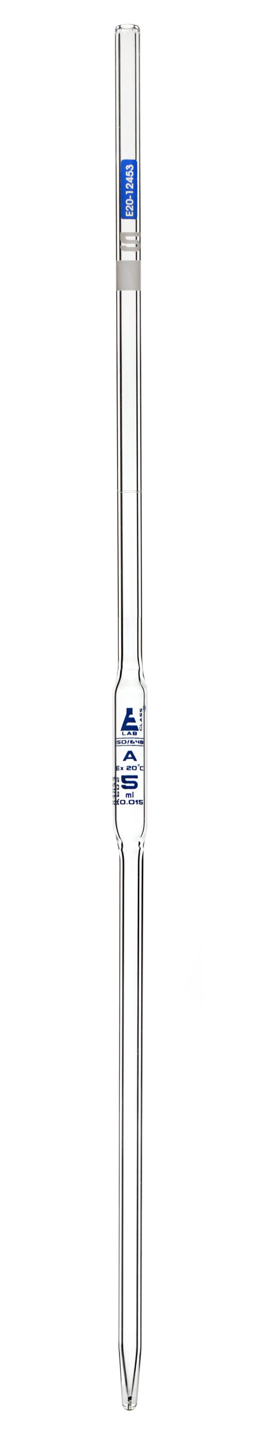 View full detailsVolumetric Pipette, 5mL - Class A - Blue Markings - White Coded - Borosilicate Glass - Eisco Labs