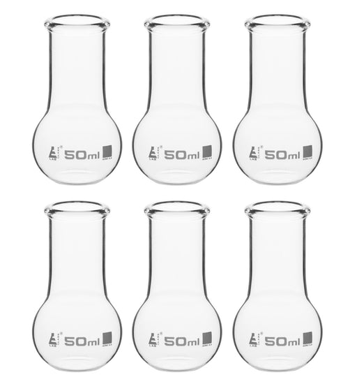 View full details6PK Boiling Flasks, 50ml - Borosilicate Glass - Flat Bottom, Wide Neck - Pack of 6 Flasks - Eisco Labs