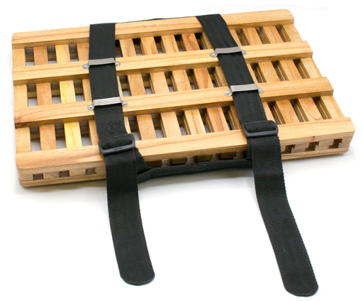 Made of durable hard wood slats, frame is 12 x 18" Includes 2 1.5 x 38" nylon straps with buckles to hold frame tightly together Strap brackets on...