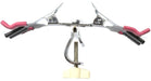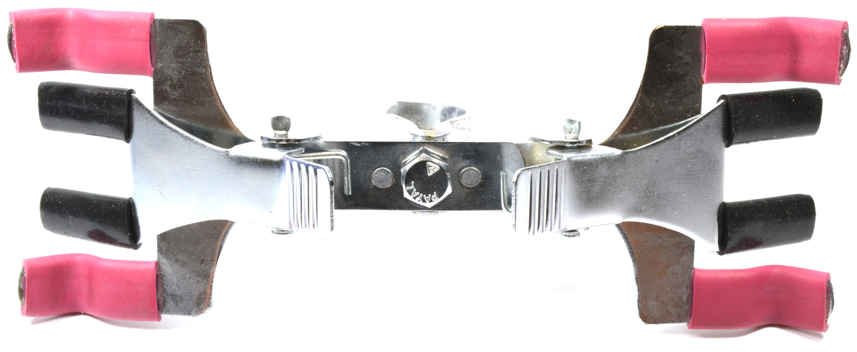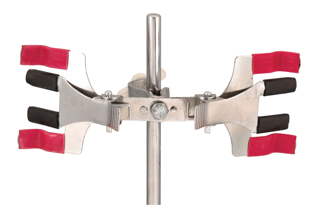 Double-sided steel clamp designed for the safe handling of burettes. The clamp tips are rubber-coated to protect equipment. Hold one or two burettes simultaneously. Adjustable clamp can be attached to rod stand and can hold burettes up to approximately 1" (approx. 3cm). This double clamp is perfect for side-by-side experiments and demonstrations.