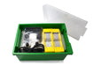 The Eisco Heavy Duty Demonstration Transformer with 4 Coil Units allows students to study not only how transformers work, but also study several different properties of induced magnetism. This kit consists of a metal base, a heavy duty laminated iron core, mounting fixtures, and four coils protected in impact resistant plastic, safe to be handled each with dimensions 12 x 9 x 7cm. Topics that can be covered using the demonstration transformer include Lenz' Law, Faraday's Law, how iron cores increase magnetic field strength, and electromagnetic induction itself. This versatile piece of equipment can also be used to teach about how power companies use transformers to modify the voltage in power lines and carry electrical energy. Unit is powered using supplied power cord. Kit Contents: U-shaped Transformer Core Base Transformer Core Bar 1 Primary Voltage Coil (600 turns) 1 Step-down Secondary Voltage Coil (6, 30, 54, 66, 72 turns)