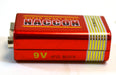 The Zinc Carbon type 6F22 battery is a great, leak proof power source for moderate current demand situations. Voltage 9 V.
