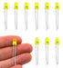 Pack of 10 high quality Light Emitting Diode (LED) with a yellow 5mm round diffused lens. Approximate length of 1.375 inches (35mm). Maximum voltage 3.0 V D.C. PCB or panel mount.