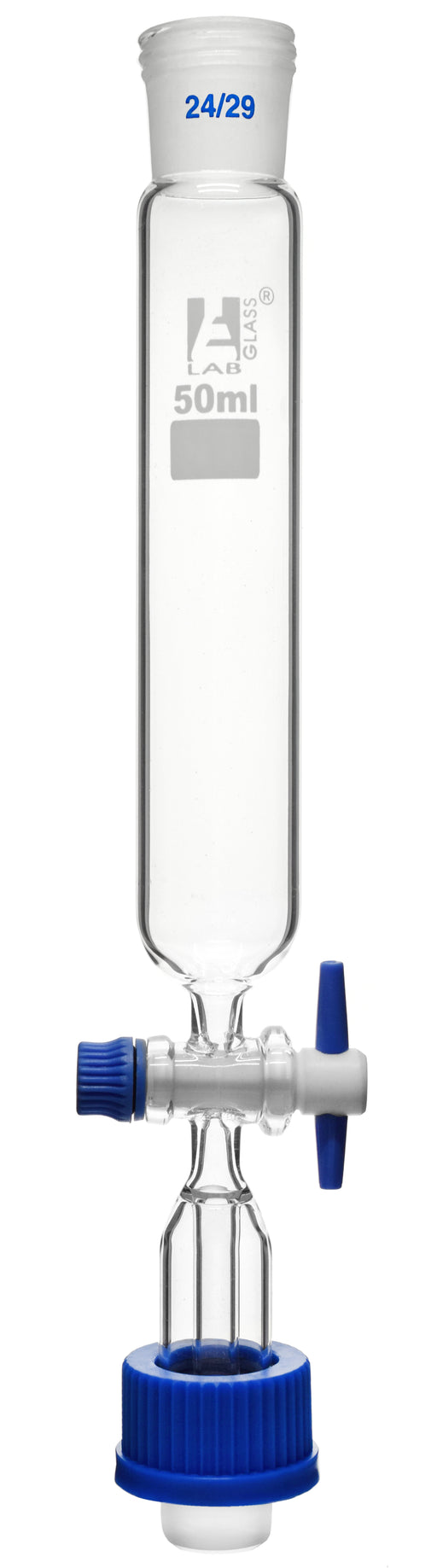 Cylindrical Dropping Funnel made of high quality, heavy duty, 3.3 borosilicate glass 50ml capacity Socket size: 29/32 Features PTFE Stopcock Appro...