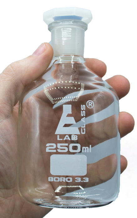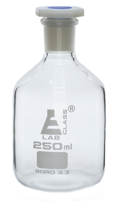 250mL (8.4oz) Glass Reagent Bottle with Acid Proof Polypropylene Stopper, Borosilicate 3.3 Glass - Eisco Labs