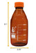 1000ml capacity reagent bottle made of high quality, amber colored Borosilicate 3.3 glass. Bottle features white, 100ml graduation lines that are marked every 200ml. As per DIN ISO 4796-1 standard. Equipped with an orange, GL 45 screw cap and features a drip free pouring ring for cleaner, safer transfers of liquids and powders. Both screw cap and pouring ring are autoclavable. Bottle features superior chemical durability and low temperature gradient- can withstand high temperatures & thermal shocks. Bottle stands 9.1" tall, with a base measuring 3.75" wide. Inner diameter of bottle mouth measures 1".