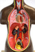 Unisex (sexless) human torso, can be dissected into 9 parts. Half life-size. Parts include: lungs and heart - 2 parts, stomach, liver and gall bladder, intestine 2 parts. Mounted on base. Numbered with English keycard. Stands approx. 19.5" tall on a 10" x 7" base