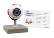 Seven-piece model of a human eye enlarged 3 times for detailed study. The upper half of the sclera with cornea and eye muscle attachments, both halves of choroids with iris and retina, lens, and vitreous humor are all removable. The durable model is molded using the highest quality nontoxic polymers and PVC, and is hand-painted by skilled artists to deliver the highest level of detail possible using vibrant paint. The model with stand comes with a key identifying 18 structures. Model on stand measures 5"L x 5"W x 6.3"H.