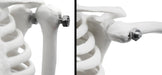 Skeleton is made of durable and washable polymer material, and features movable joints, an articulated mandible and removable skull cap. Arms and legs are attached by threaded studs and nuts, allowing you to adjust their flexibility. Knees, ankles, elbows & wrists are moveable.