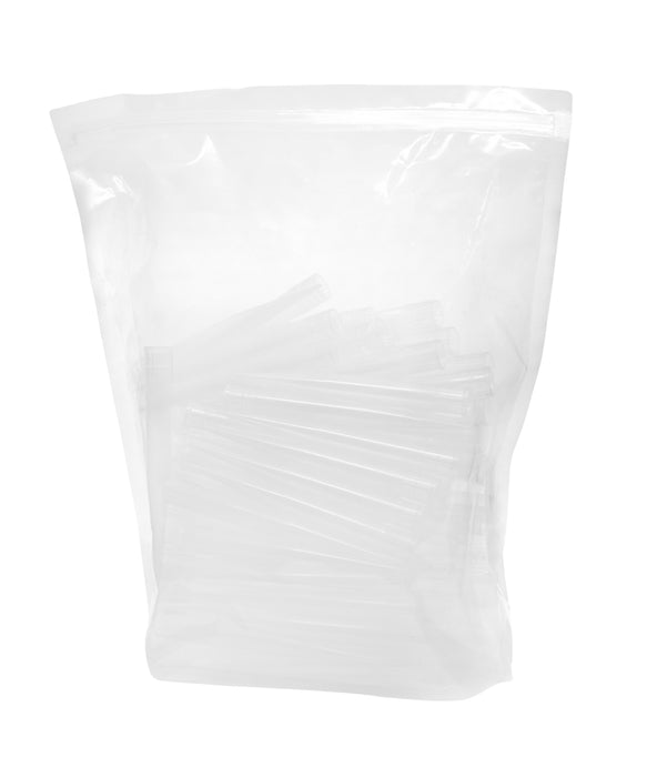 Pack of 100 nonsterile Micropipette Tips with 10,000µL capacity. Free from RNase, DNase, and endotoxins. Fits Eisco Variable Volume Micropipettes with a 10,000µL top range (part numbers VVM112 & VVM13). Each micropipette tip measures 150mm long and is calibrated for delivery.