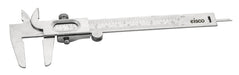 Plated steel caliper for measuring inside, outside, or depth. Dual scale: 0-12cm x 0.1mm | 0-5" x 1/16". Thumb wheel provided for easy motion of jaws.