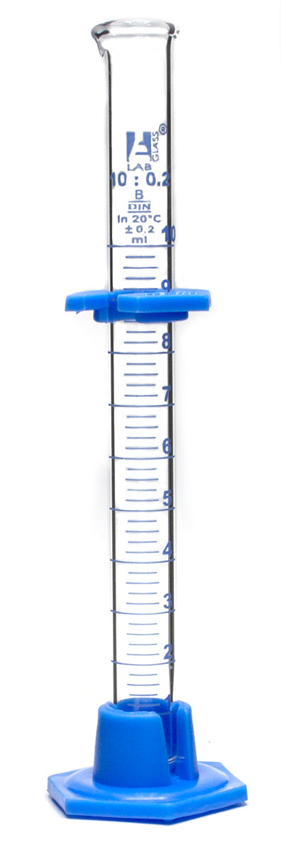 View full detailsMeasuring Cylinder, 10ml - Class B - Detachable, Plastic Hexagonal Base & Protective Collar - Blue Graduations - Borosilicate Glass - Eisco Labs