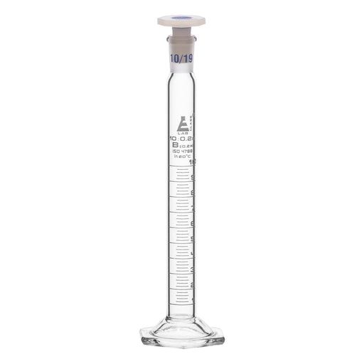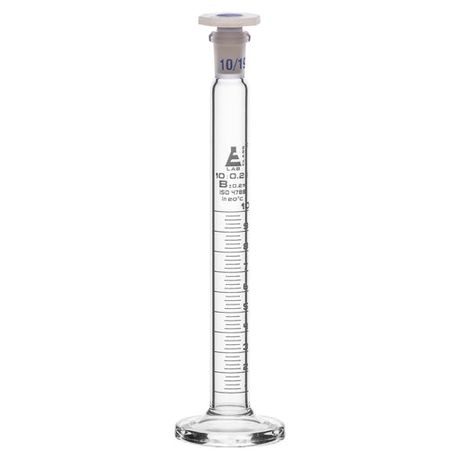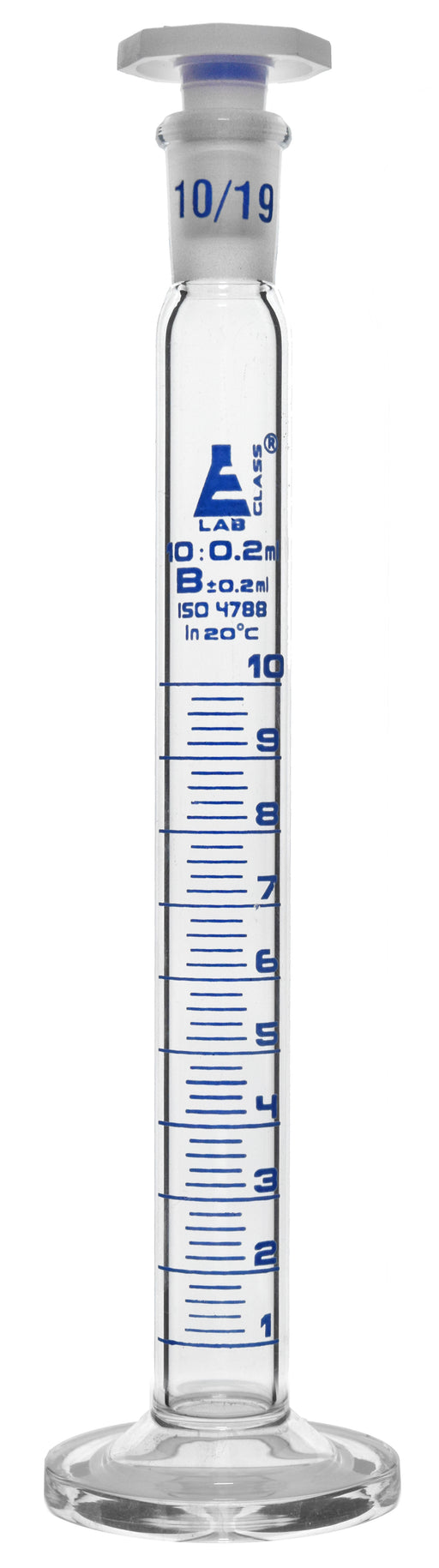 Class B measuring cylinder made of high quality borosilicate 3.3 glass Fitted with interchangeable 29/32 polypropylene stopper Sub. Div.: 10.0ml, ...