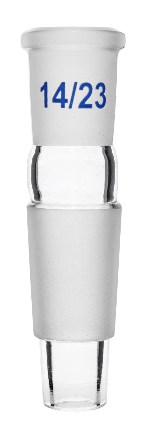 Reduction adapter, made of high quality, borosilicate glass Socket size: 14/23 Cone Size: 24/29 Measures 3.2" tall and approximately 0.75" wide Ad...
