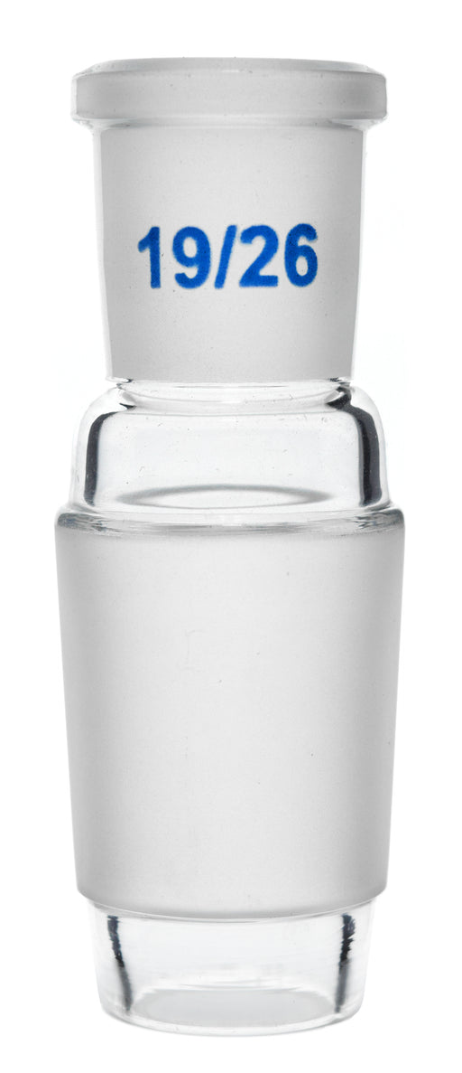 Reduction adapter, made of high quality, borosilicate glass Socket size: 19/26 Cone Size: 24/29 Measures 3.25" tall and approximately 1.2" wide Ad...