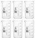 Pack of 6, 500ml capacity, tall form beakers made of Borosilicate 3.3 Glass. Graduations marked every 50ml. Spouts for easy pouring. Uniform walls provide excellent strength against breakage.