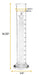 500ml graduated measuring cylinder made of high quality, heavy duty Borosilicate 3.3 glass. Spout for easy pouring, and round base for extra stability. Class B tolerance, ±5.00ml as per DIN EN ISO 4788 standard. White printed graduations and specifications. 5ml subdivisions. Cylinder stands 14.25" tall, with a base measuring 3.6" wide. Inner diameter of cylinder body measures 50mm (2"), and outer diameter measures 59mm (2.3").