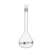 Borosilicate glass volumetric flask with white markings, fitted with solid glass stopper, in compliance with ASTM-E288 standard. 9.5" Height with a 2" flat base. Capacity 250ml, Tolerance ±0.120 ml, Stopper No. 16