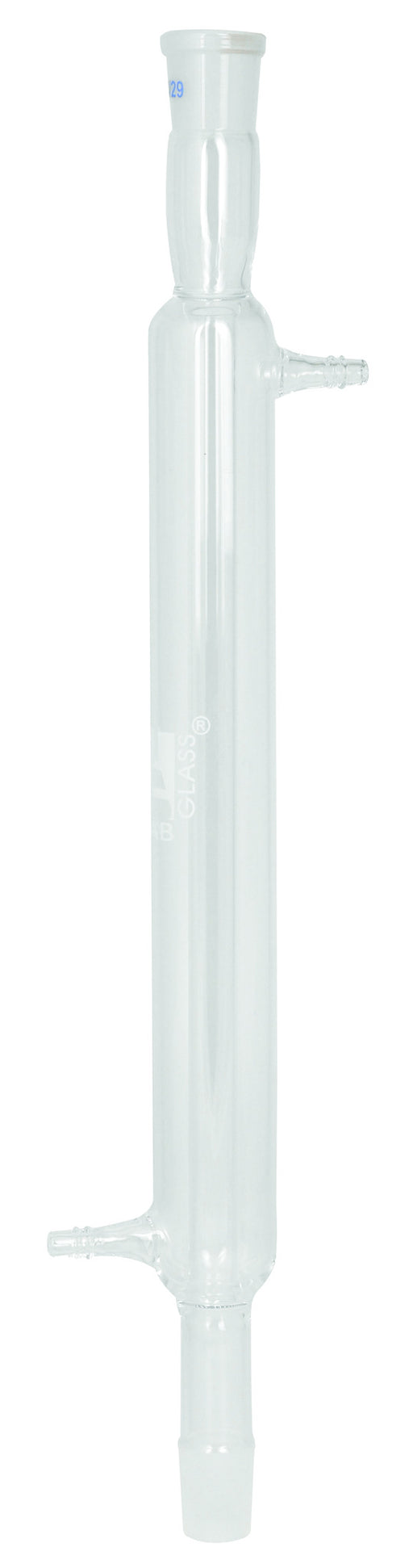 Borosilicate glass, inner tube integral with body, narrow jacket for efficient cooling.
