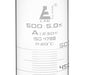 500ml graduated measuring cylinder made of high quality, heavy duty Borosilicate 3.3 glass. Spout for easy pouring, and round base for extra stability. Class A tolerance, ±2.50ml as per DIN EN ISO 4788 standard. White printed graduations and specifications. 5ml subdivisions. Cylinder stands 14.25" tall, with a base measuring 3.6" wide. Inner diameter of cylinder body measures 50mm (2"), and outer diameter measures 59mm (2.3").