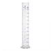Graduated cylinder made of Borosilicate 3.3 glass. Features spout and round base. Blue graduations.