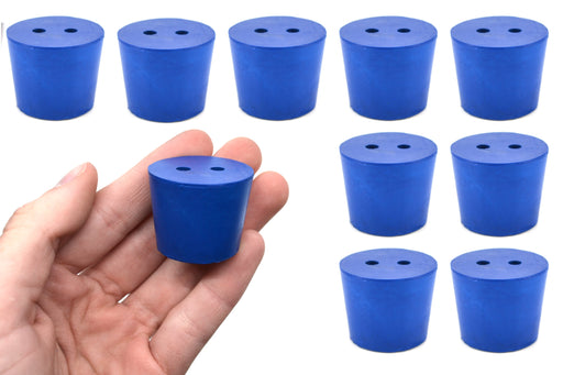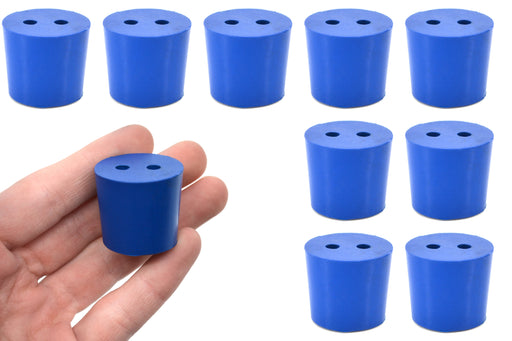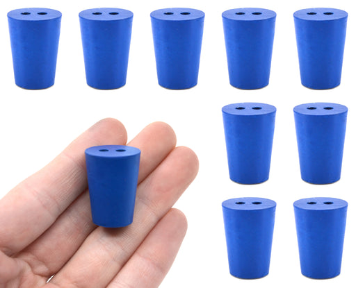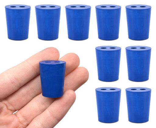 Pack of ten #0 stoppers made of long lasting neoprene rubber. Blue color. Each stopper features two holes measuring 3mm in diameter. Manufactured a...