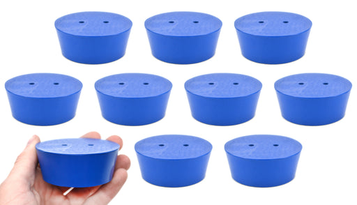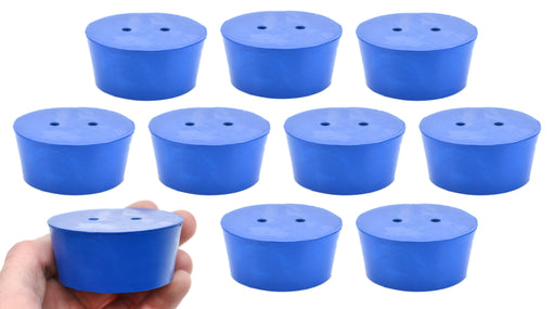 Pack of ten #2 stoppers made of long lasting neoprene rubber. Blue color. Each stopper features two holes measuring 5mm in diameter. Manufactured a...