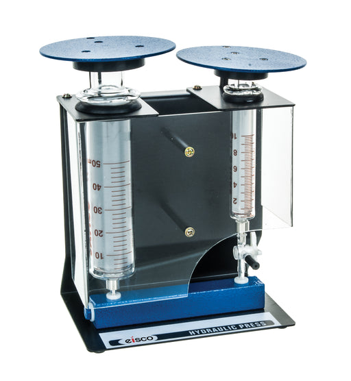 Fluid Pressure Apparatus for demonstrating the transmissibility of fluid pressure Features two brass cylinders (19mm and 38mm diameter) fitted wit...
