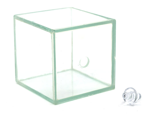 Made from glass plates, cemented together. Includes stopper. 50x50x50mm Hollow inside allows for a variety of optic experimentation Great for stud...