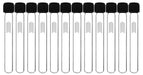 Pack of twelve, round bottom culture tubes, each with a 5ml capacity. Tubes are made of high quality Borosilicate 3.3 Glass, and include a Bakelite screw cap with rubber liner for a leak proof seal. Each tube features a small, 0.6" x 0.3" writable area for easy labeling. Tubes are useful for a variety of laboratory applications including transferring and storing chemicals and samples, and for handling and culturing biological material. Also suitable for use in the home or garage for crafting and storage.