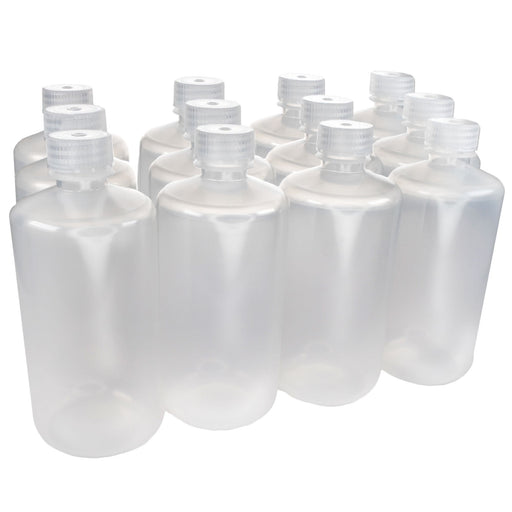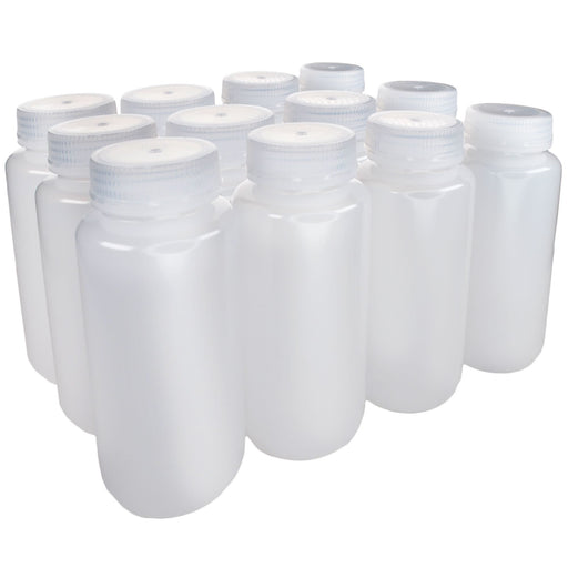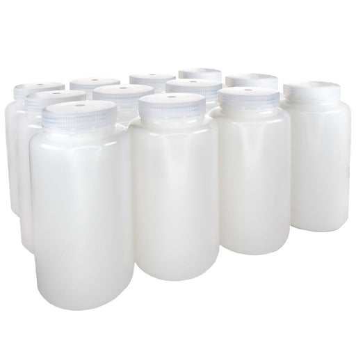 PACK OF 12 WIDE MOUTH REAGENT BOTTLES || Includes twelve 1L translucent polypropylene bottles with wide mouth openings and polypropylene caps for ...