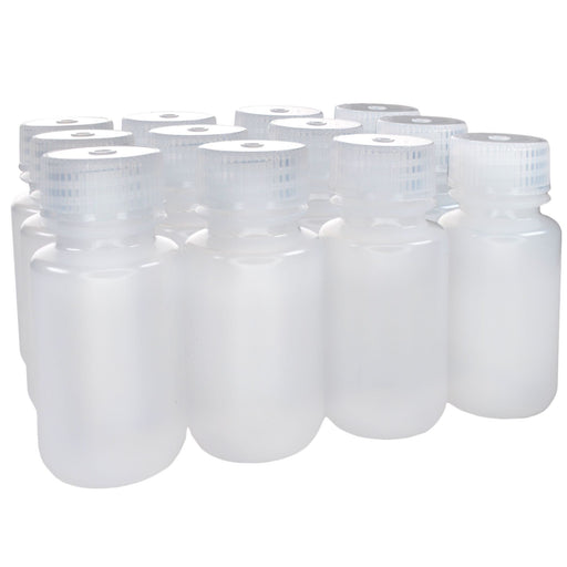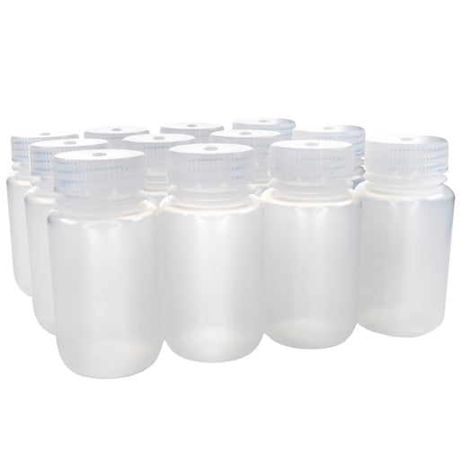 PACK OF 12 WIDE MOUTH REAGENT BOTTLES || Includes twelve 125mL translucent polypropylene bottles with wide mouth openings and polypropylene caps f...