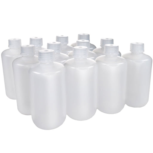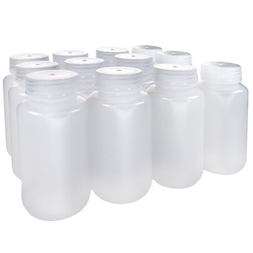 PACK OF 12 HDPE REAGENT BOTTLES || Includes twelve 1L translucent wide-mouth bottles made of HDPE, featuring polypropylene caps, ideal for reagent...