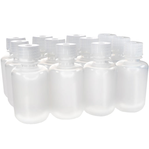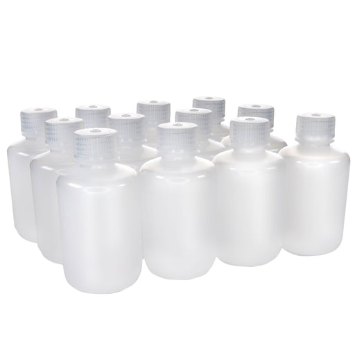 PACK OF 12 HDPE REAGENT BOTTLES || Includes twelve 125mL translucent wide-mouth bottles made of HDPE, featuring polypropylene caps, ideal for reag...