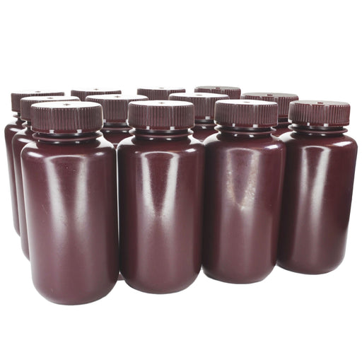 PACK OF 12 AMBER REAGENT BOTTLES || Includes 12 sterile 250mL wide-mouth HDPE bottles with polypropylene caps, designed for laboratory sample stor...
