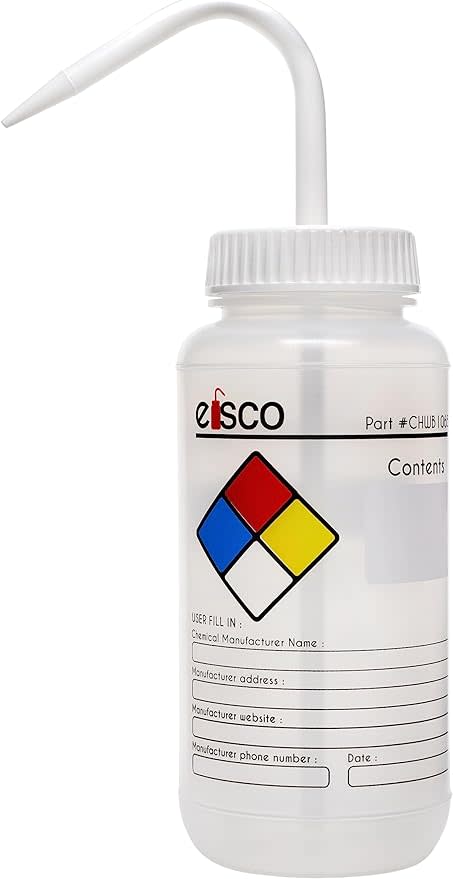 View full detailsEisco Labs 125ml, and 250ml Polyethylene Wash Bottle with Delivery Tube, Screw Cap, and Tube Cap, LDPE