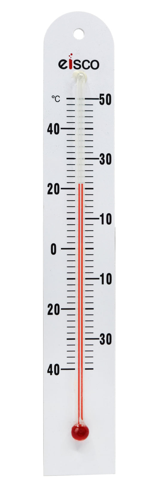 View full detailsPVC Thermometer, -40 to 50°C, - White PVC Backing, Glass - Spirit Filled - 6.5" Long, 1" Wide - Eisco Labs