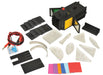 Included in Kit: (1) Light/Ray box with hinged mirrors, (1) Lamp holder, (2) 12V (20W) bulbs, (2) 4mm banana plug leads, (2) Slit plates, (8) Mounted color filters, (8) Color cards, (1) Rectangular prism, (1) 45/45/90 prism, (1) Equilateral prism, (1) 30/60/90 triangular prism, (1) Semicircular prim, (1) Bi-concave lens, (2) Bi-Convex lens, (1) Plane mirror on stand, (1) Parabolic mirror, (1) Semi-circular mirror, (1) Semi-circular Dish, (1) Manual