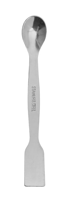 Single, high quality, stainless steel laboratory spoon with spatula end. Polished. Total length of spoon/spatula measures 4.9". Designed for use in professional laboratories, but is an ideal choice for science classrooms and household use. Useful for restaurants and kitchens. Excellent for general application, scooping, transferring and mixing of powders and pastes.