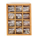 Set of 12, Quality rocks samples supplied in wooden case Set of 12, Quality rocks samples supplied in wooden case with compartments and sliding perspex top. Each specimen labelled with name.