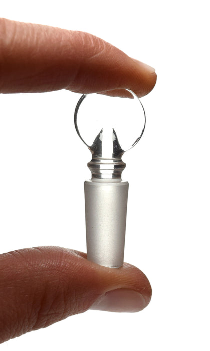 Solid cone stopper with flat head. Joint size 10/19. Made of high quality borosilicate glass. 1.1" tall.
