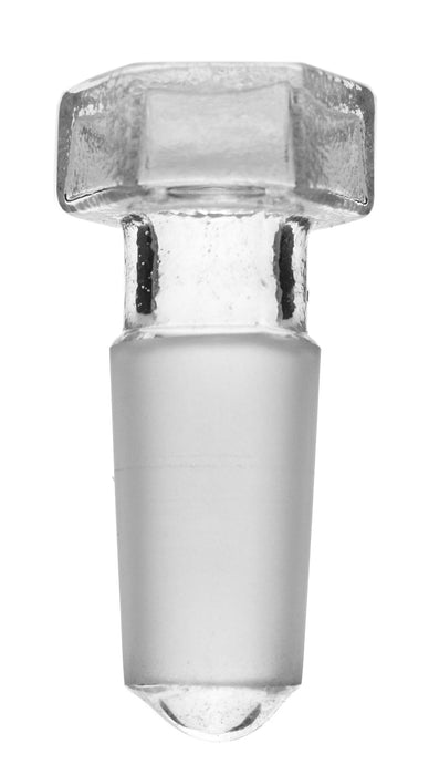 Hollow stopper made of high quality, 3.3 borosilicate glass. Stopper features a hexagonal shape top and a round End. 14/23 cone size.