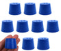 Pack of ten #6.5 stoppers made of solid, long lasting neoprene rubber. Blue color. Manufactured according to sizes recommended by ASTM standards. Each stopper measures 25mm in length, has a base diameter measuring 27mm, and a top diameter measuring 34mm. The neoprene rubber construction is suitable for use with petroleum products, minerals, oils and fats, as well as most inorganic acids and bases. Resistant to temperatures ranging from -40 to 130°C.